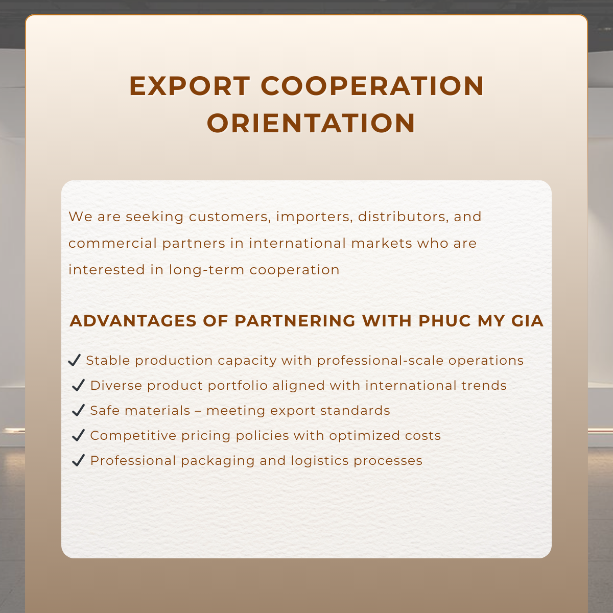 Phuc My Gia looks forward to meeting, connecting, and partnering with you on the journey to create sustainable and aesthetically refined living spaces and interior projects.